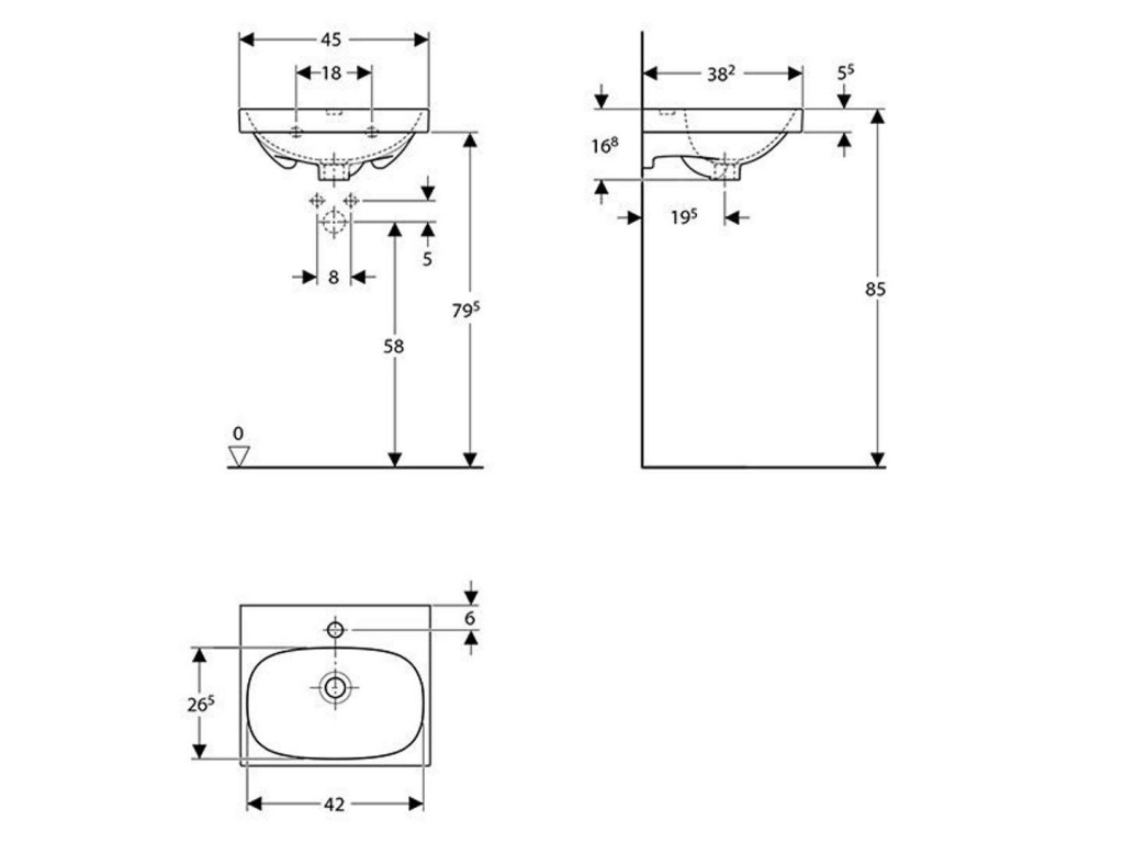 Umývadlo s jedným otvorom pre batériu