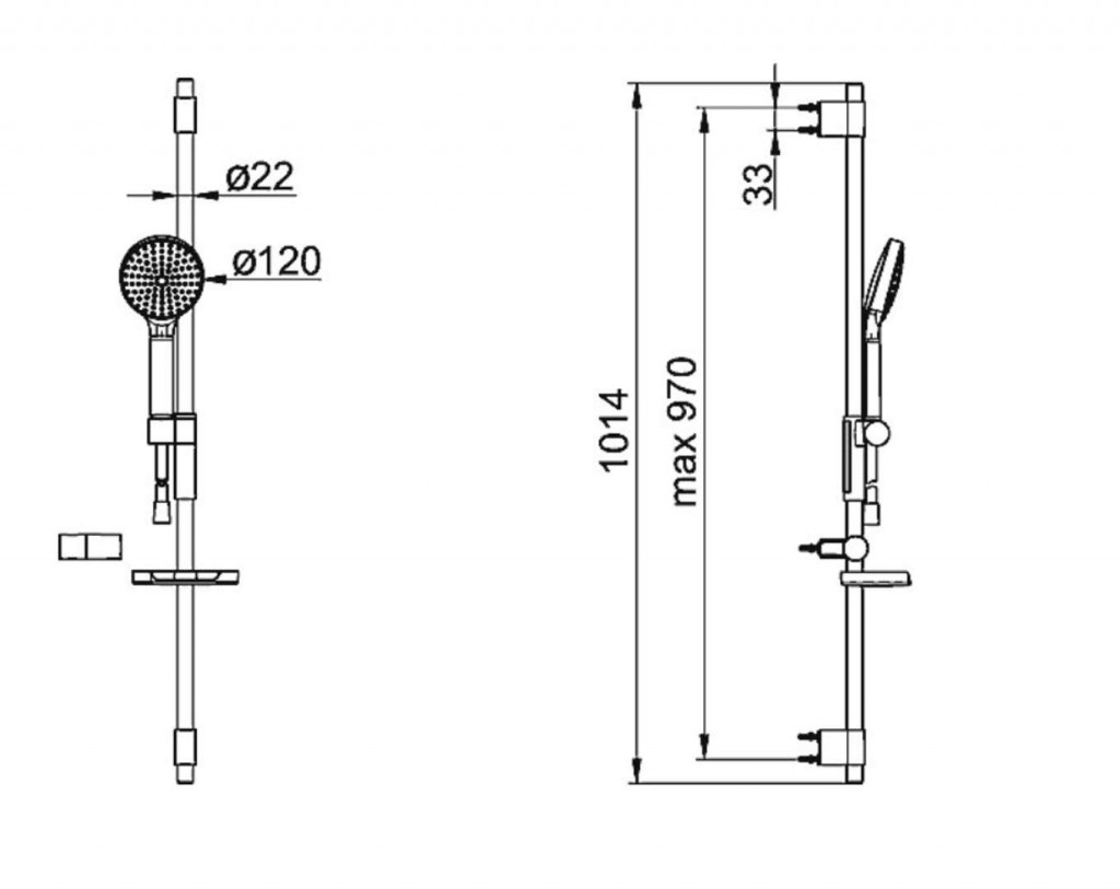 - dĺžka tyče max. 970 mm, priemer 22 mm