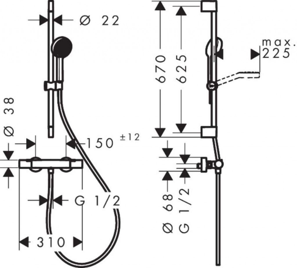 Sprchový systém 95 2jet EcoSmart, s termostatom Ecostat Fine a sprchovou tyčou 65 cm
