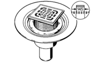utesňovacie príruba, otočný a výškovo nastaviteľný nadstavec 150 x 150 mm, zátka, rám z plastu, rošt z ušľachtilej ocele 1.4301, vyberateľný zápachový uzáver