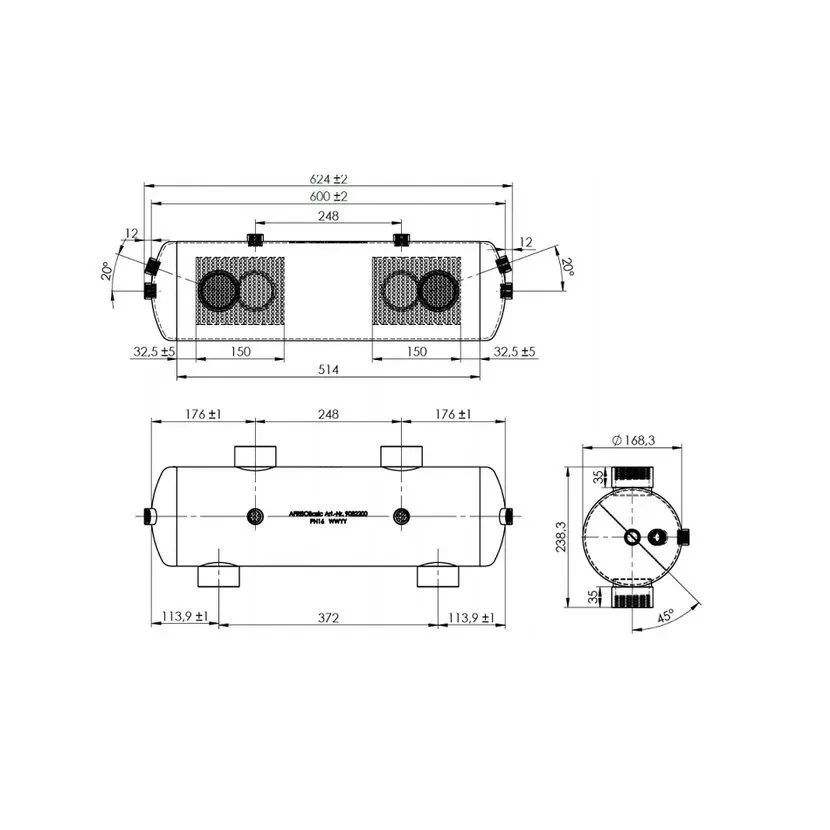 AFRISO Hydraulická výhybka hydraulickej výhybky BLH 822 200kW niklovaná oceľ s izoláciou pre dvoch tepelné okruhy