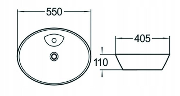 Samotné umývadlo na dosku je dlhé 55 cm a hlboké 40 cm , čo nabáda k tomu, že je možnosť umiestnenia dvoch umývadiel vedľa seba /pokiaľ vám priestor dovolí/. Umývadlo nemá bezpečnostný prepad, len otvor pre kohútik. Preto k nemu vyberajte nízku batériu. Vždy sa snažte vyberať takú, aby ústie kohútika smerovalo doprostred umývadla. Jedine tak zabránite nechcenému rozstrekovaniu vody a zároveň budete mať dostatok priestoru na umývanie rúk.
