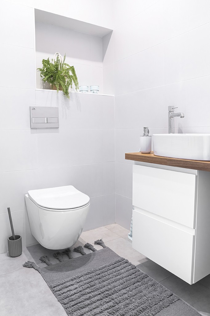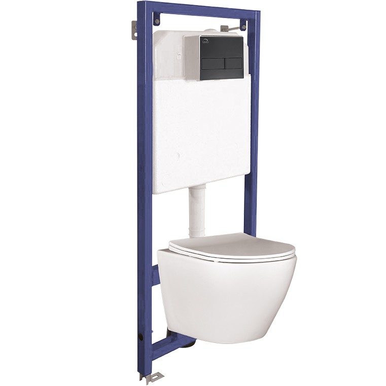 Skrytý rám Akan pre ľahkú konštrukciu. Tento rám je určený pre závesnú toaletu, ktorú je možné zakúpiť ako sadu alebo samostatne. Ďalej si môžete zakúpiť rám bez tlačidla alebo s horizontálnym tlačidlom, dostupný v štyroch rôznych povrchových úpravách. Rám rady Akan je vhodný na montáž na stenu alebo na stĺpiky. Jeho nosnosť je 400 kg. Použité materiály ho účinne odhlučňujú. Tichý napúšťací ventil zabraňuje kondenzácii. Možno je aj rohová inštalácia. Súčasťou dodávky je horizontálne tlačidlo, ktoré je dvojdielne a nádržka sa aktivuje spredu. Vstavaný dávkovač umožňuje nízke splachovanie s nastaviteľným objemom od 3 do 6 litrov. Desna je závesná toaleta s rozstupom otvorov 18 cm a bez viditeľných montážnych prvkov po stranách. Bezokrajový dizajn uľahčuje údržbu. Ďalšou výhodou misy je jej nadčasový vzhľad. Biely prvok sa vyznačuje zaujímavým tvarom, vďaka čomu je perfektným doplnkom každej modernej kúpeľne. Misa je dodávaná so sedadlom s odolnými pántami s mechanizmom tlmeného dovierania a rýchloupínacím systémom. Tento model je vyrobený z mimoriadne odolného plastu - Duroplastu odolného proti poškriabaniu a zmene farby. Táto konštrukcia pántov eliminuje hlasný hluk pri zatváraní veka a poškodení spôsobených silným nárazom na okraj toaletnej misy. Závesný model má robustnú konštrukciu, čo zvyšuje komfort vašej kúpeľne.