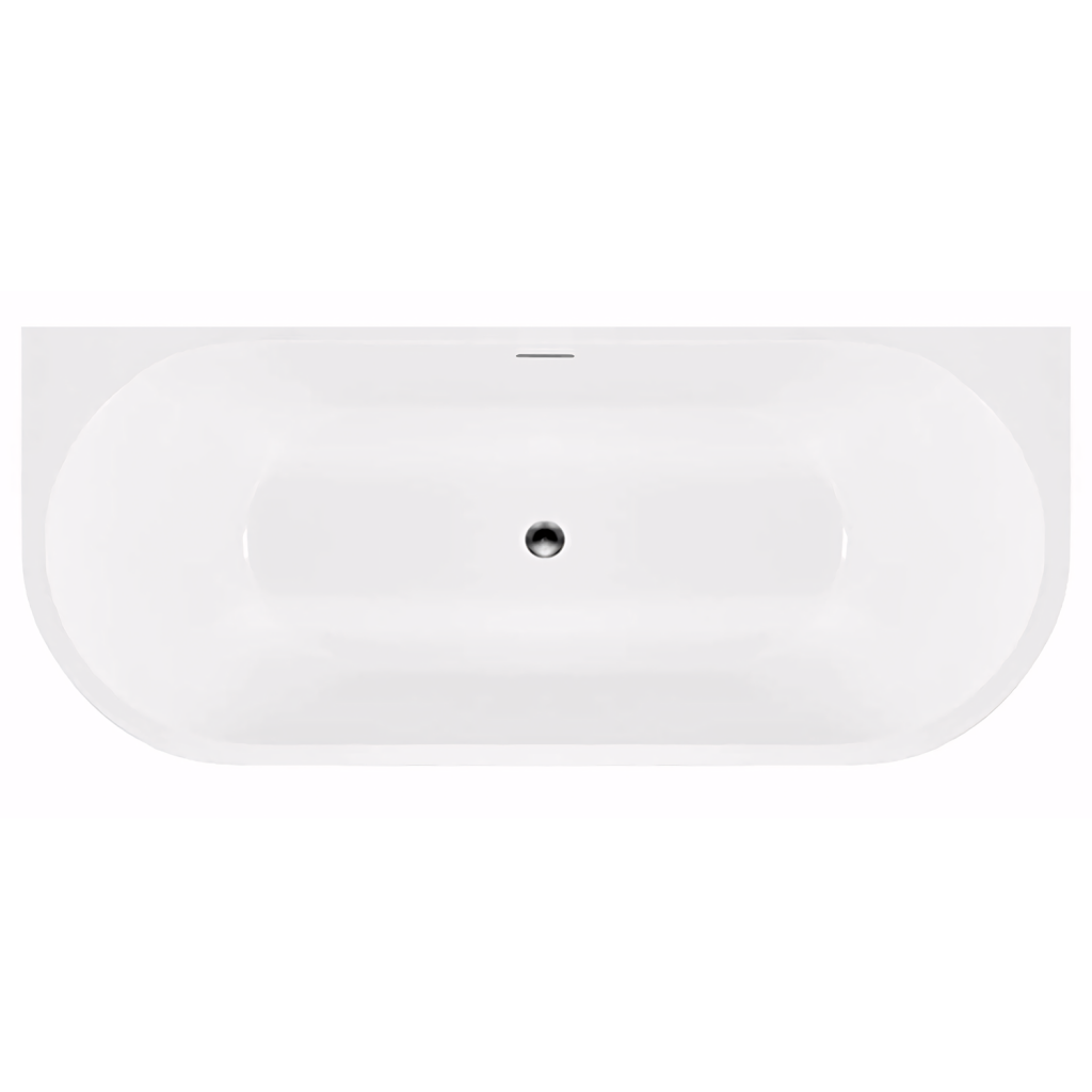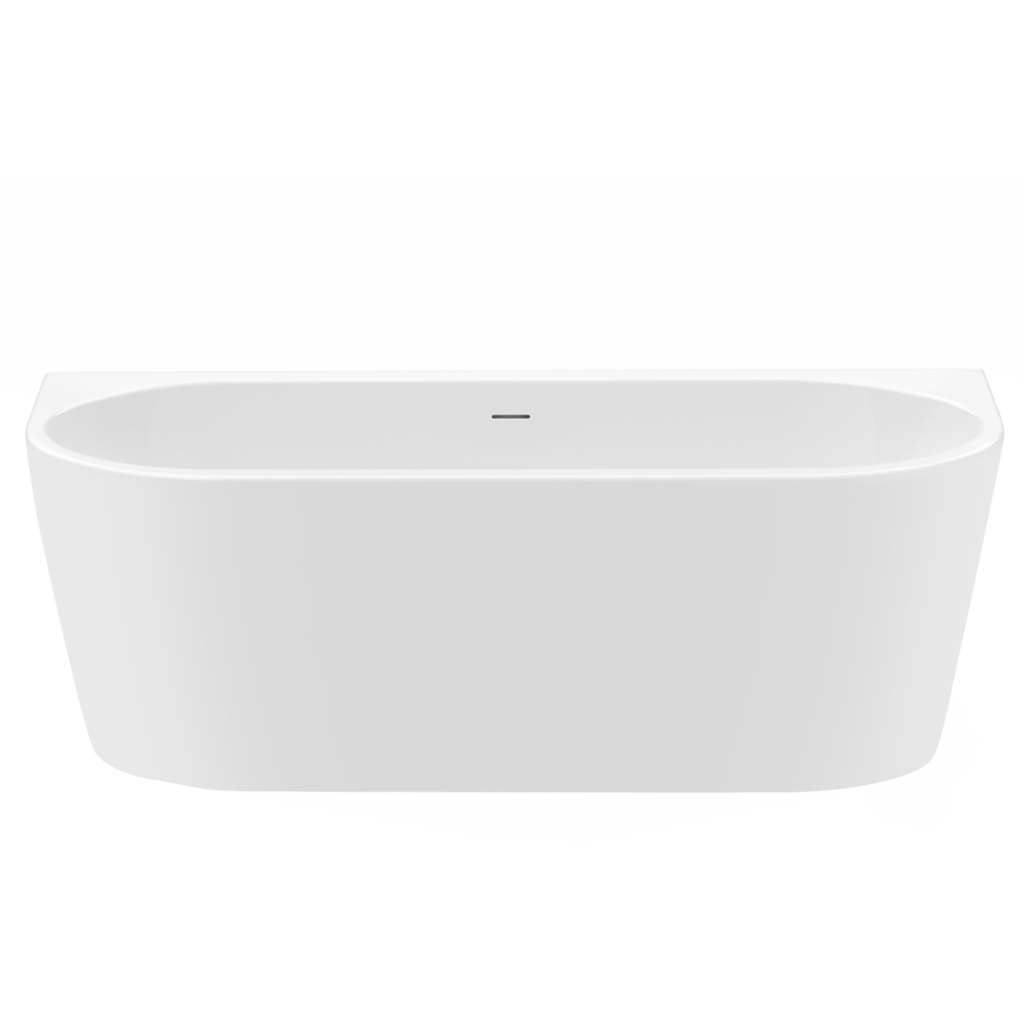 Voľne stojace vane sú často spájané s luxusnými kúpeľňami a ponúkajú jedinečný zážitok z kúpania. Vaňa má hladké, zakrivené okraje a obdĺžnikovú základňu, ktorá je určená na umiestnenie k stene. Prepadový odtok je viditeľný, čo ukazuje na funkčnosť vane pri prevencii preplnenia.
