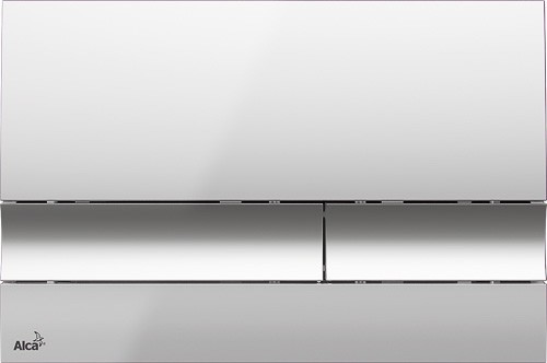 Alcadrain Ovládacie tlačidlo pre predstenové inštalačné systémy, chróm-lesk M1721; Vlastnosti: Možnosť farebného kombinovania základnej dosky a splachovacích tlačidiel; Dvojčinné mechanické splachovanie; Povrchová úprava: chróm-lesk; Kompatibilný pre všetky predstenové inštalačné systémy a nádrže pre zamurovanie Alcadrain; Materiál: plast; Použitie: Pre predstenové inštalačné systémy a WC nádrže zamurovanie; Technické parametre: Ovládacia sila (GT)