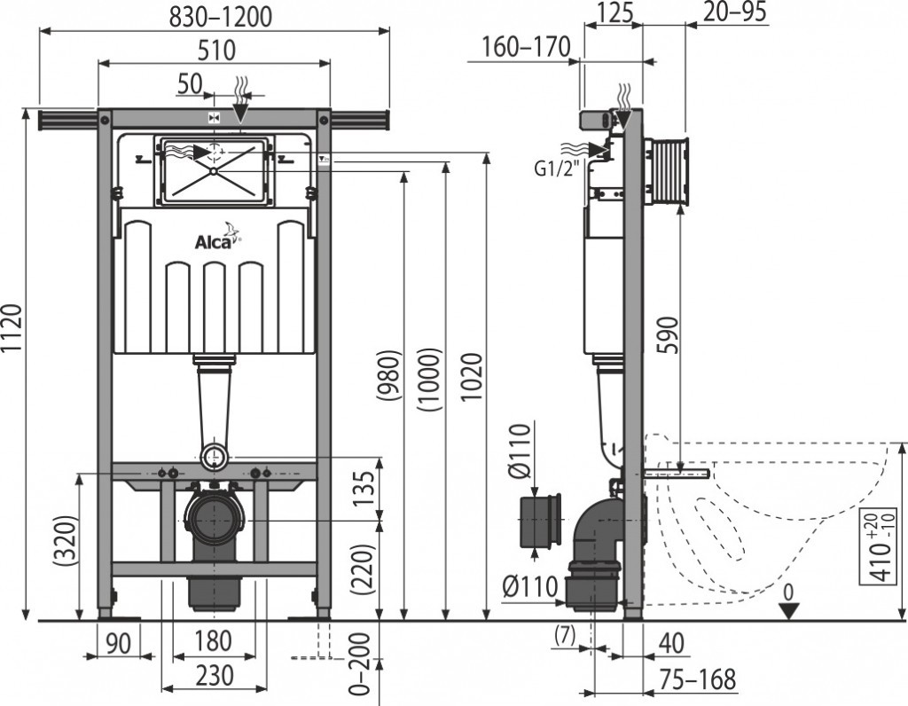-Pre montáž závesného WC s pripojovacím rozstupom 180 mm alebo 230 mm