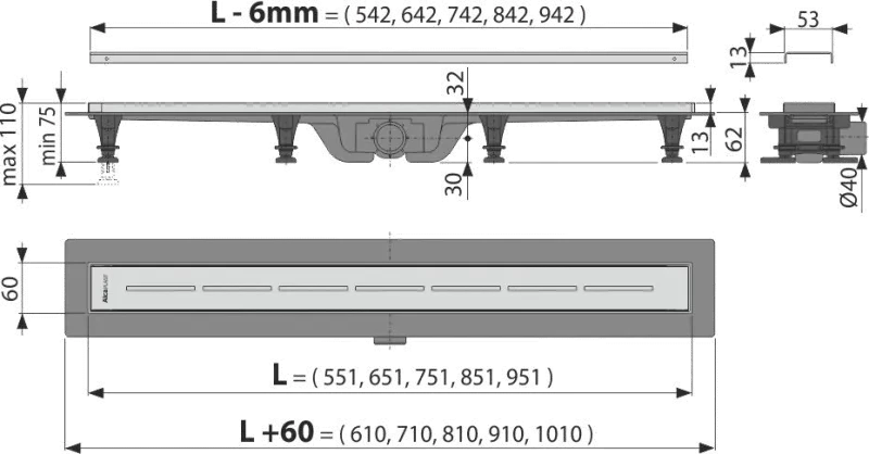 Alcadrain APZ18-750M Simple Podlahový žľab s perforovaným roštom