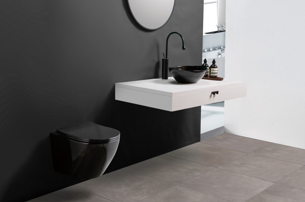 závesná WC misa v čiernom prevedení