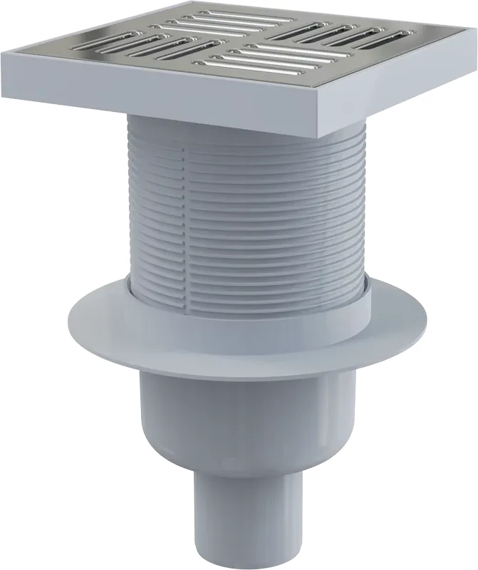 Alcadrain Podlahová vpusť 150 × 150/50 mm priama, mriežka nerez, vodná zápachová uzávera APV6411; Vlastnosti: Nerezová mriežka 143x143x5 mm; Výškovo upraviteľné hrdlo 22-110 mm; Izolačné golier pre napojenie na hydroizoláciu stavby; Priame napojenie na odpad 50 mm; Mechanicky čistiteľný sifón až po odpadovú trubku; Vodné zápachová uzávera; Kompatibilita s dielcami podlahových vpustov vrátane vodnej, suché a kombinované zápachové uzávery SMART; Materiál: polypropylén odolný voči mechanickému, chemickému a tepelnému poškodeniu; Použitie: Pre vnútorné priestory, kde sa predpokladá časté využívanie spojené s pravidelným odtokom vody do vpustu (kúpeľne); Pre odvodnenie v úrovni podlahy; Pre bezbariérový prístup; Technické parametre: Prietok s vtokovou mriežkou 46 l / min; Zápachová uzávera vodný 51 mm; Odolnosť zápachové uzávery proti tlaku 480 Pa; Trieda zaťaženia K3 300 kg; Rozsah dodávky: Telo vpuste priame 50 mm; Hrdlo vpuste 150x150 mm; Nerezová mriežka; Vodné zápachová uzávera; súprava tesnení