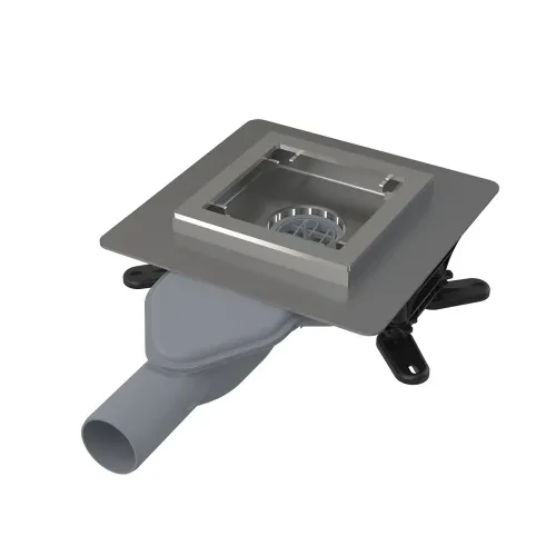 Podlahová vpust nerezová extra-nízka 130 × 130 mm bočné, bez mriežky, vodné