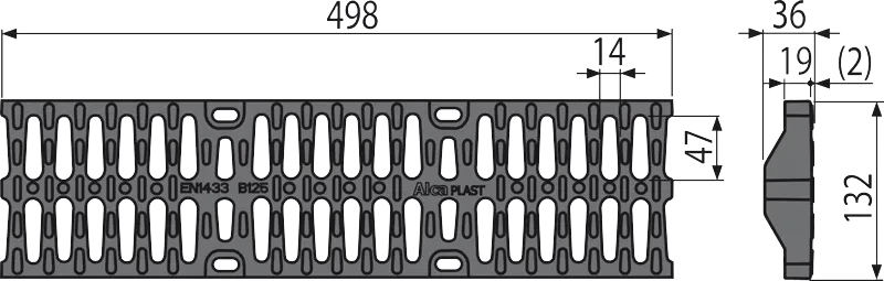 Alcadrain Rošt pre vonkajšie žľab AVZ104 kompozitný B125 AVZ-R402; Vlastnosti: Zabezpečený v tele žľabu pomocou štyroch nerez skrutiek; Veľkosť ôk 47x14 mm; Trieda zaťaženia B125; Materiál: kompozit; Použitie: Pre vonkajšie žľab AVZ104; Technické parametre: Trieda zaťaženia B125 12500 kg; Rozsah dodávky: Gril