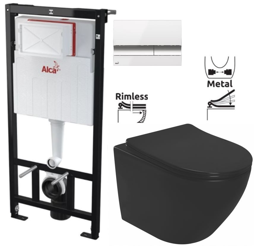 Závesná WC misa RIMLESS Carlo Mini Slim čierna matná (REA-C8489)