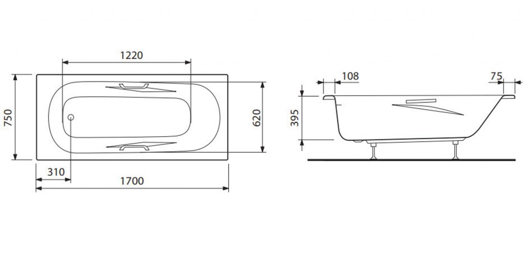 - rozmery: dĺžka 1700 mm, šírka 750 mm, výška 395 mm