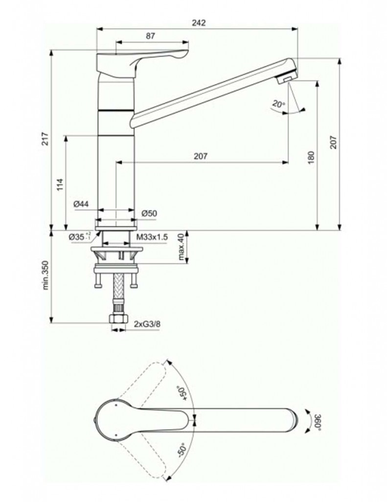 - kovová páka s funkciou CLICK, obmedzujúce prúd vody za účelom úspory vody