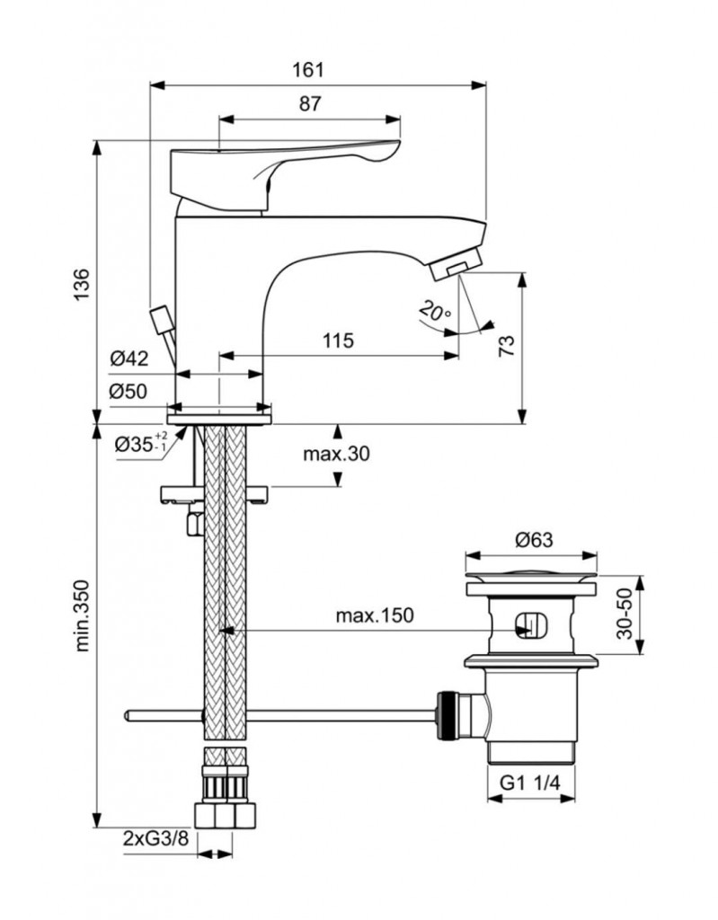 - kovová páka s funkciou CLICK, obmedzujúce prúd vody za účelom úspory vody