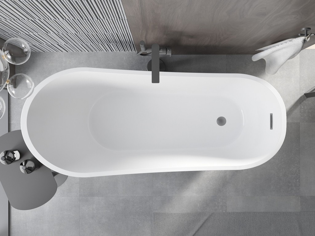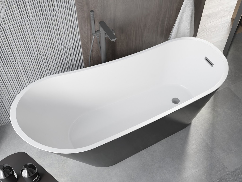 Mexen Alta je elegantná voľne stojaca vaňa s rozmermi 170 x 75 cm, spájajúca modernosť a funkčnosť. Vyrobené zo sanitárneho akrylátu, zaisťuje trvanlivosť a odolnosť proti matovaniu a UV žiareniu. Oválny tvar a unikátny čiernobiely a kartáčovaný pištoľový sivý povrch ho odlišujú od ostatných produktov. Vaňa sa ľahko inštaluje a sada obsahuje sifón a zátku click-clack, vďaka čomu je kompletným riešením pre každú kúpeľňu.