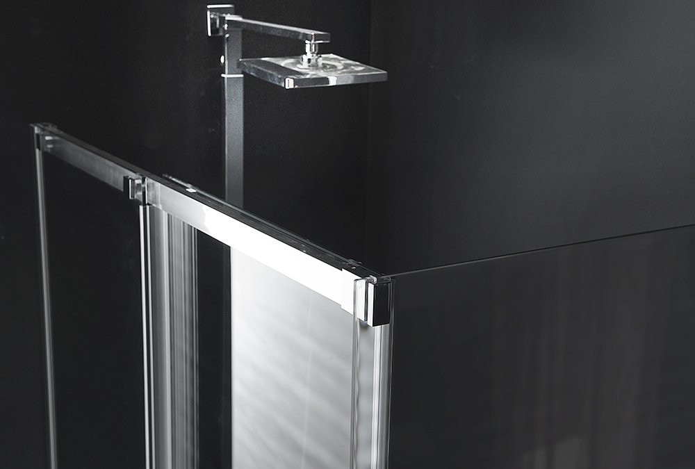 Ochranu proti pretečeniu vody u bezrámových zásten zaisťuje nízka prietoková lišta, ktorá dotvára čistý vzhľad zásteny. Bezrámové zásteny tak pôsobia sviežim elegantným dojmom.