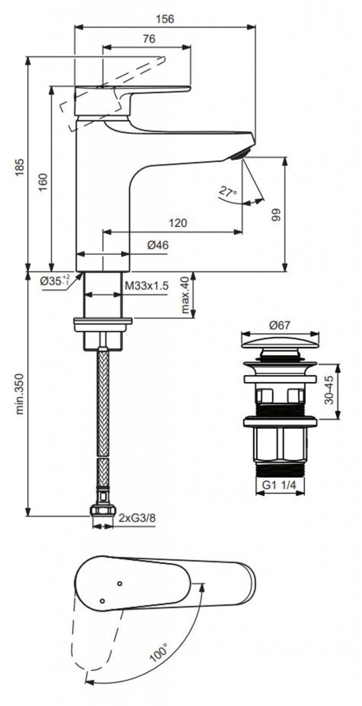 - flexibilná hadica: 2x G3/8
