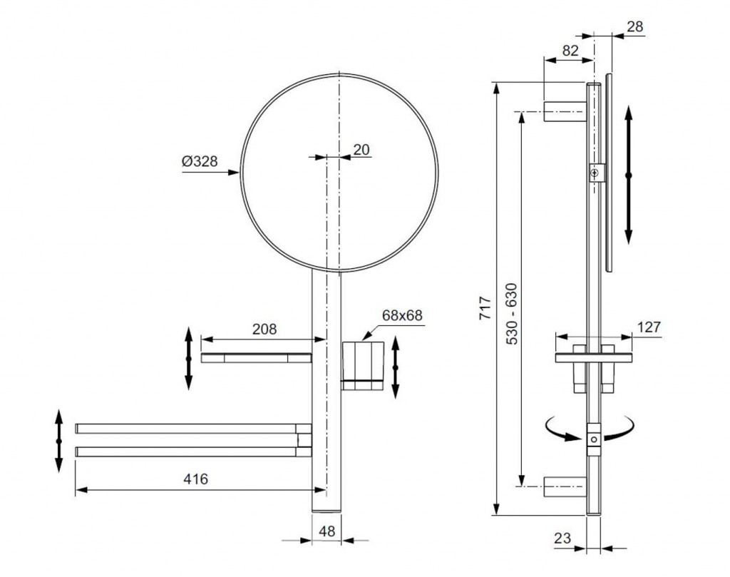 Kúpeľňové zrkadlo na tyči s príslušenstvom