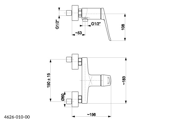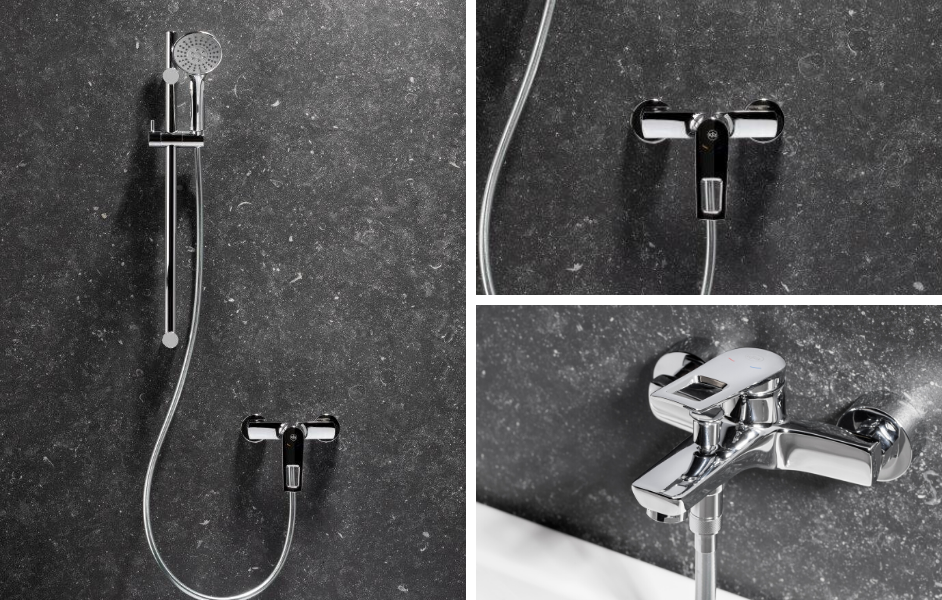 Nástenná sprchová batéria AMAZONIT od výrobcu KFA ARMATUR A s rozstupom 150 mm bez príslušenstva.
