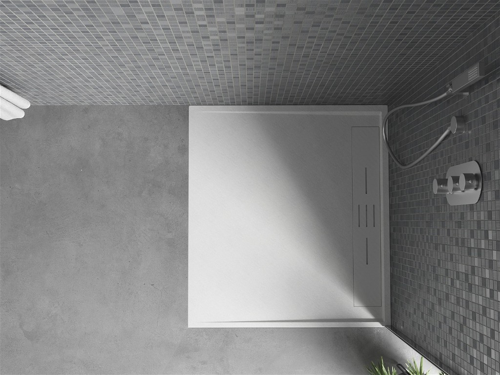 Ponúkaná sprchová, obdĺžniková, ultratenká vanička AMON je harmóniou kvality, funkčnosti a estetiky. Sprchovú vaničku je možné položiť na podlahu , zapustiť do podlahy a pokiaľ je to nutné aj ľubovoľne rezať . Sprchová vanička je vyrobená z kompozitného materiálu SMC , ktorý je mimoriadne odolný proti vlhkosti, mechanickému poškodeniu a čistiacim prostriedkom, čo sa premieta do mimoriadnej odolnosti, ľahkosti a elegancie výrobku. Kompozitný povlak SMC , ktorý imituje kameň, vďaka svojim vlastnostiam nereaguje na zmeny teplôt, takže použitie je príjemné. Nízkoprofilový dizajn Zaisťuje pohodlné a bezpečné sprchovanie a zároveň vytvára elegantný vzhľad kúpeľne. Nízky profil sprchovej vaničky dokonale zapadá do moderných designových trendov a umožňuje inštaláciu v rovine s podlahou, čím eliminuje akékoľvek prekážky pri každodennom používaní sprchy. Toto riešenie zaručuje nielen pohodlie, ale aj ľahké čistenie.