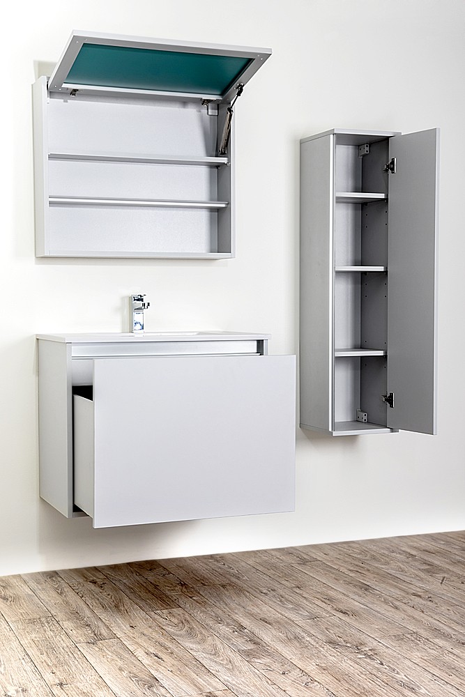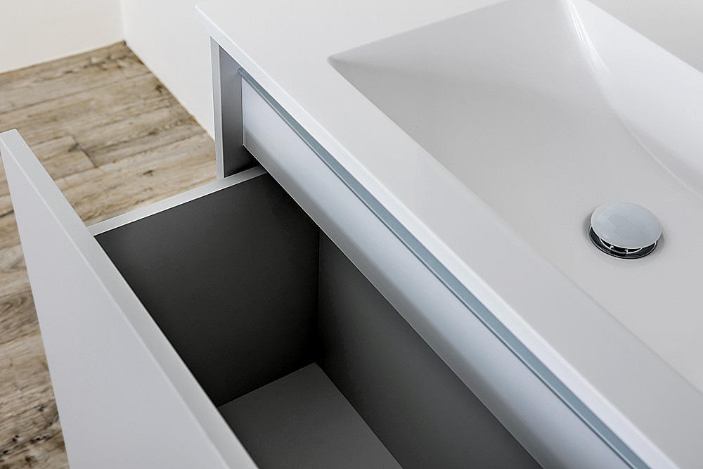S miernym presahom cez hrany skrinky a vstavaným prepadom perfektne dopĺňajú jednoduchý, ale funkčný vzhľad celej kolekcie Amsterdam, ktorý podčiarkuje použitie úchytových líšt z eloxovaného hliníka.