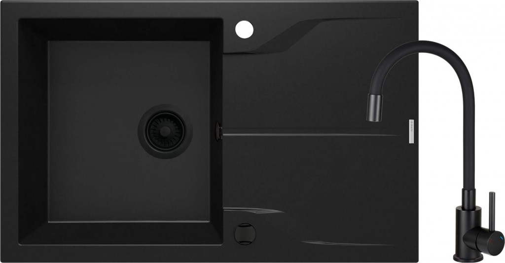 Granitový drez s batériou tvorí kompletnú kuchynskú zostavu. Je vyrobená z odolnej prírodnej žuly, ktorá je odolná nielen voči vysokej teplote a jej výkyvom, ale aj nárazom a zmene farby, v súlade s európskou normou PN-EN 13310. Navyše je obohatená o hydrofóbnu vrstvu, ktorá uľahčuje tok jednotlivých kvapiek. V rovnakej farbe je aj vodovodná batéria s pohodlnou výlevkou. Praktický 1-miskový drez s odkvapkávačom je perfektným riešením pre malé kuchyne a štúdiá s kuchynským kútom. Slúži aj ako sušiak, profilovaný povrch účinne odvádza vodu stekajúcu z riadu alebo umytých potravín.
