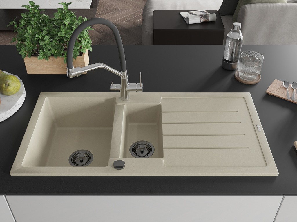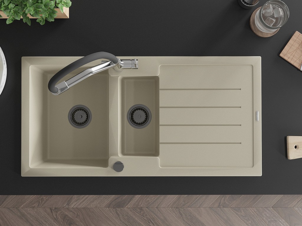 Špeciálne zloženie materiálu použitého na výrobu je žula (80% žula – kameň, 20% živica) a jeho vysoká hustota garantuje bezpečné používanie výrobku, a preto sú granitové drezy tak obľúbené. Vďaka povrchovej úprave nie je na granitovom dreze vidieť zaschnuté kvapky, je odolný voči škvrnám a nestráca farbu. Povrch je odolný voči nárazu, poškriabaniu, zmene farby, vysokej teplote a teplotným šokom. Pri ich údržbe sa používajú obvyklé čistiace prostriedky alebo prostriedky na riad s jemným abrazívom. Výhodou je rozmanitá farebná ponuka.