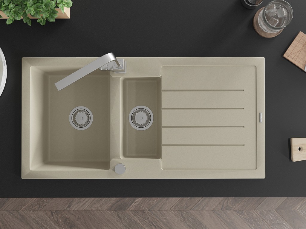 Špeciálne zloženie materiálu použitého na výrobu je žula (80% žula – kameň, 20% živica) a jeho vysoká hustota garantuje bezpečné používanie výrobku, a preto sú granitové drezy tak obľúbené. Vďaka povrchovej úprave nie je na granitovom dreze vidieť zaschnuté kvapky, je odolný voči škvrnám a nestráca farbu. Povrch je odolný voči nárazu, poškriabaniu, zmene farby, vysokej teplote a teplotným šokom. Pri ich údržbe sa používajú obvyklé čistiace prostriedky alebo prostriedky na riad s jemným abrazívom. Výhodou je rozmanitá farebná ponuka.