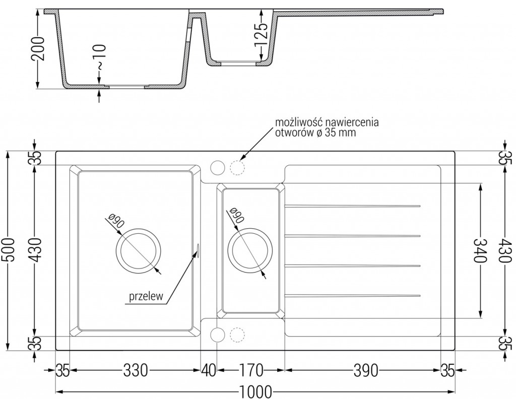 Dva dodatočné vyfrézované otvory na samodierovanie ø35