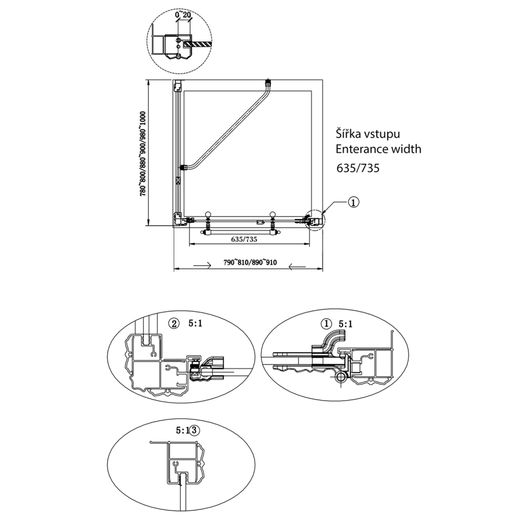 | Tvar | Pevná stěna ke sprchovým dveřím |