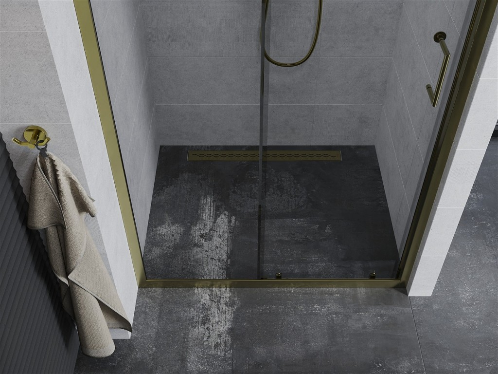 Sprchové dvere z kolekcie Mexen Apia . Funkčné posuvné dvere so spoľahlivými valčekmi, ktoré zaručujú plynulé a tiché posúvanie. Obliečka na skle uľahčuje ich čistenie, takže si môžete dlhšie užívať dokonale priehľadné a lesklé sklo. Tvrdené a bezpečné sklo a povrchové prvky dverí sú vyrobené z nerezového materiálu pokrytého povrchovou úpravou. Hliníkový profil s prahom, ktorý zaručuje dokonalú tesnosť. Inštalácia do výklenku v stene, na vaničku alebo na podlahu.