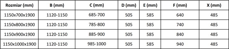 Rozmer: 115x100 cm (dvere 115 cm, stena 100 cm)