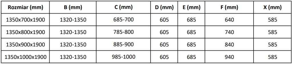 Rozmer: 135x100 cm (dvere 135 cm, stena 100 cm)