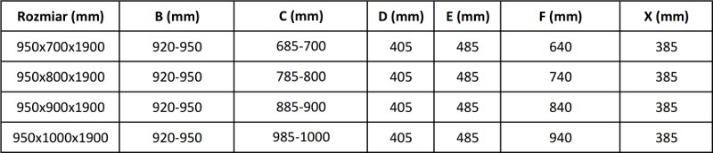 Rozmer: 95x90 cm (dvere 95 cm, stena 90 cm)
