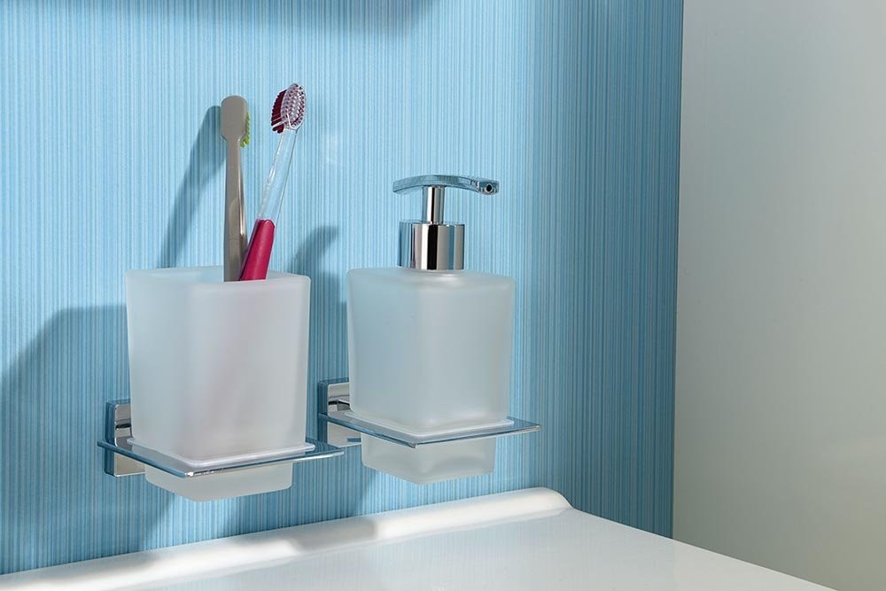 Série APOLLO zaujme moderním vzhledem i zajímavou cenou. Sklenička, mýdelník, nádobka dávkovače mýdla a WC štětky jsou z mléčného skla.