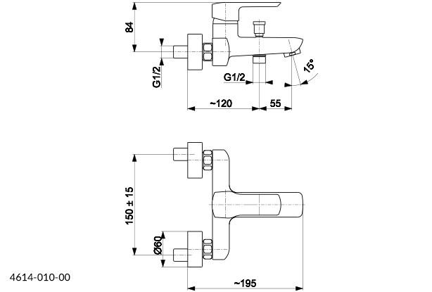 Nástenná vaňová batéria AQUAMARYN od výrobcu KFA ARMATUR A s rozstupom 150 mm.