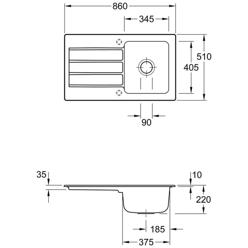 - celkový rozmer drezu: 830 x 480 mm