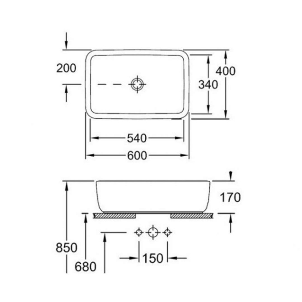 Umývadlo na postavenie na dosku alebo kúpeľňovú skrinku