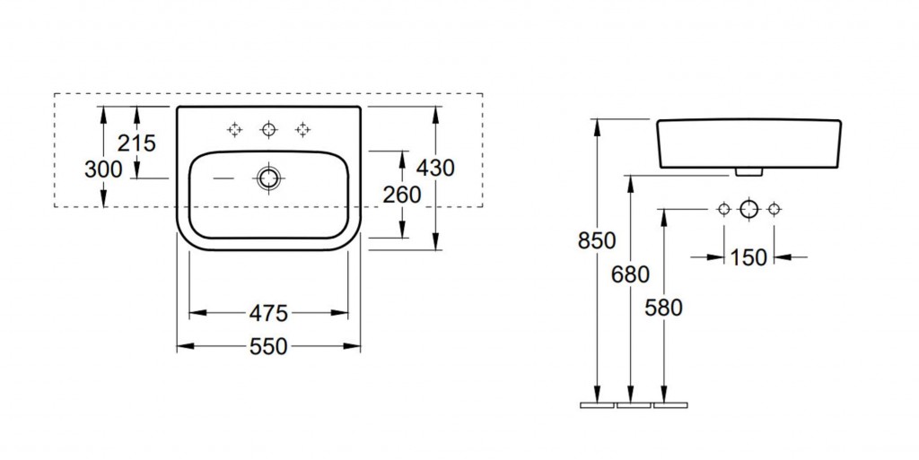Polozápustné umývadlo na dosku alebo kúpeľňovú skrinku