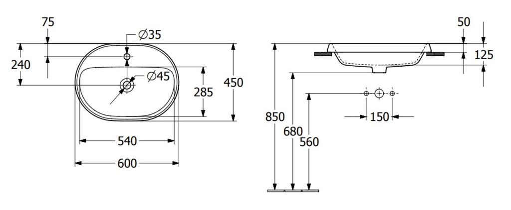 Oválne vstavané umývadlo