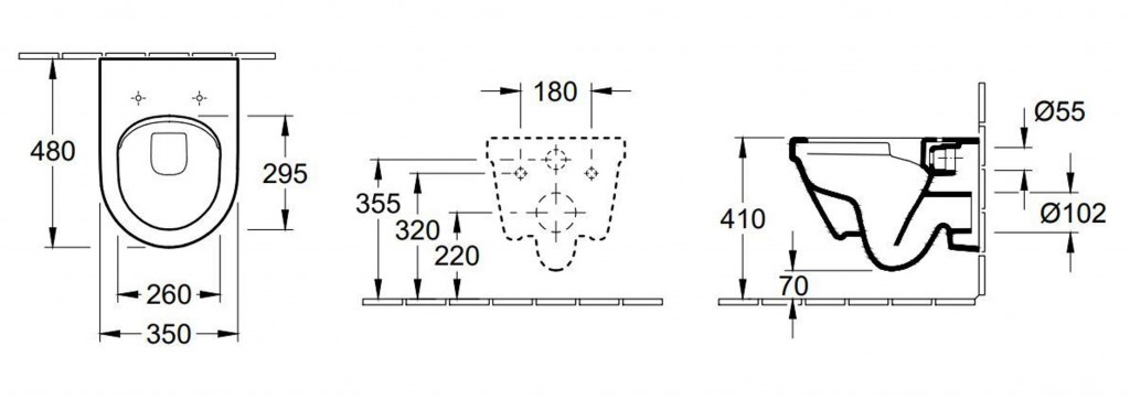 - inštalácie: zavesením na stenu
