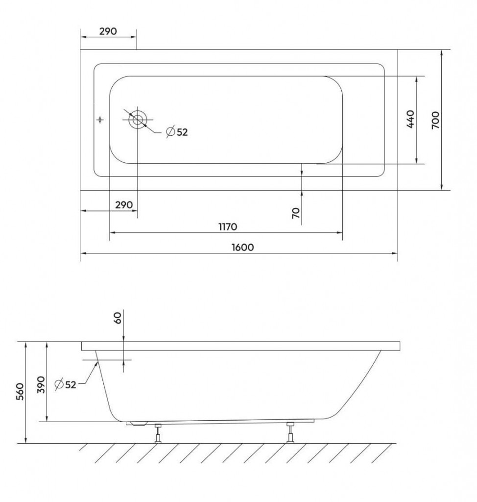 Vaňová odtoková súprava a podpora vane nie sú súčasťou balenia, treba ich objednať zvlášť.