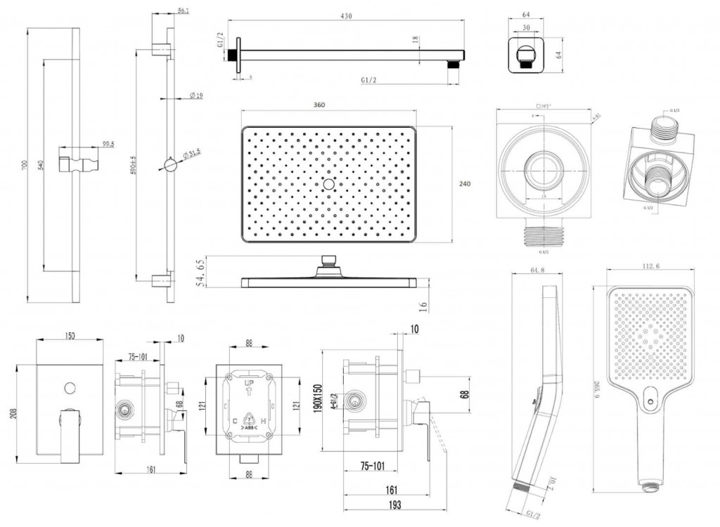 - veľkosť sprchovej hlavice 120 x 110 mm