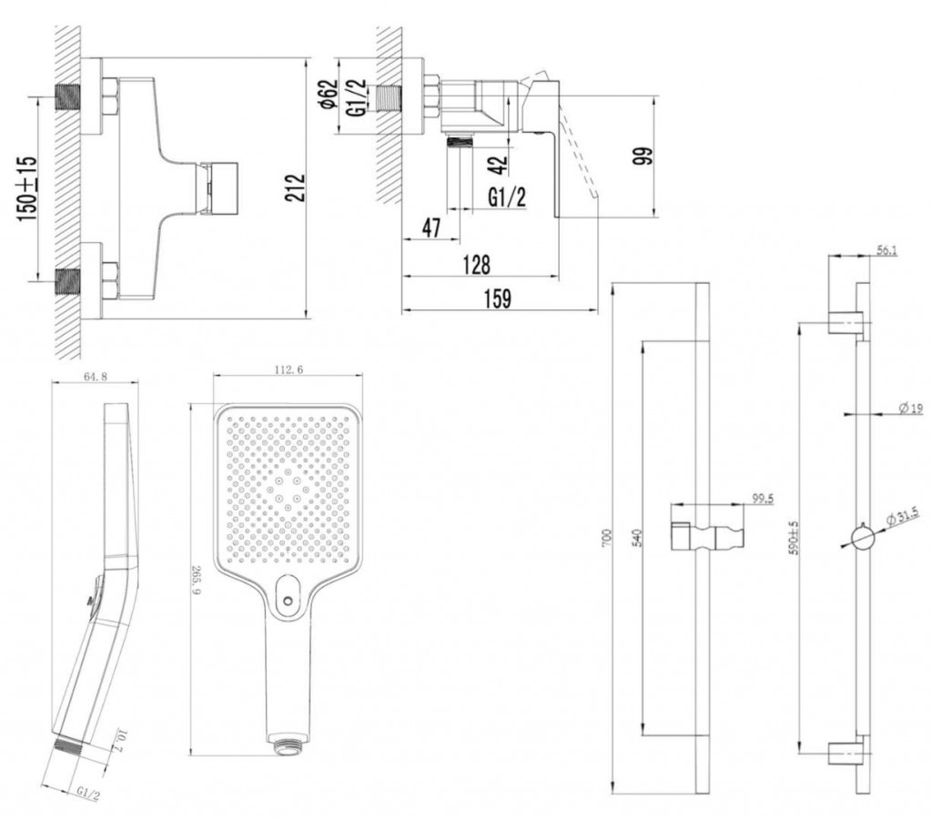 - veľkosť sprchovej hlavice 120 x 110 mm