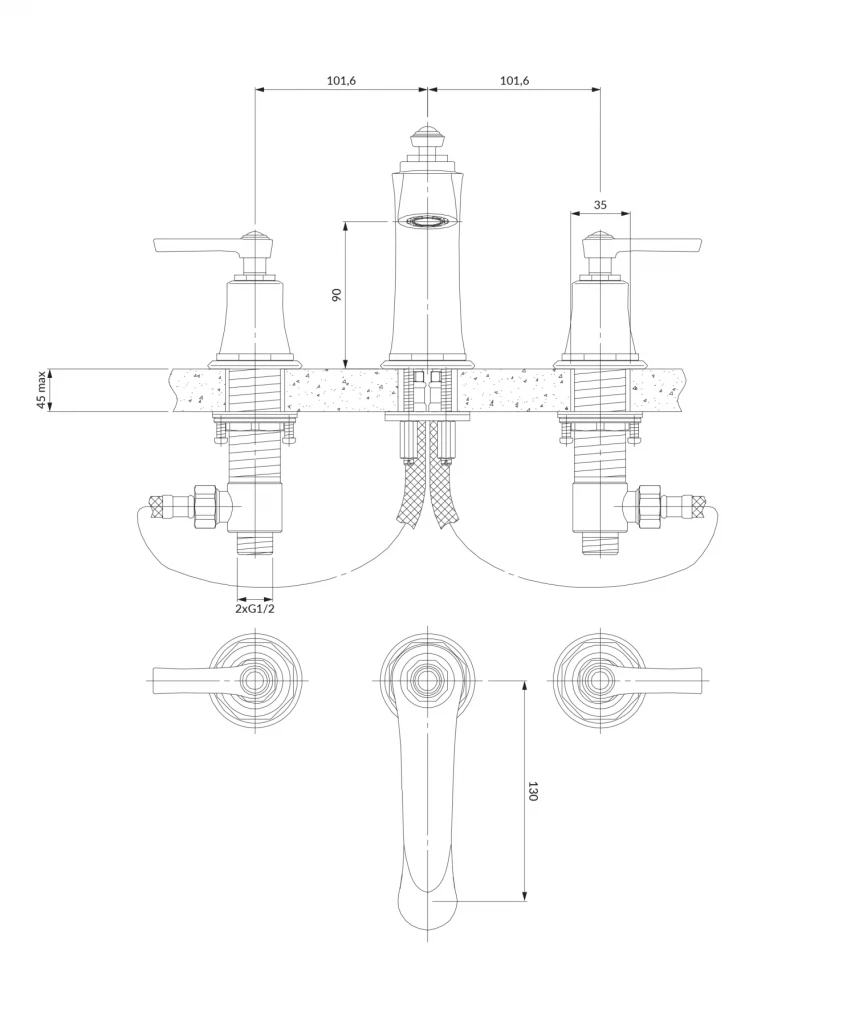 Trojprvková stojanková batéria s inštaláciou do umývadla je vyrobená z kvalitnej mosadze triedy A a je vybavená najkvalitnejšou keramickou kartušou, ktorá zaisťuje plynulé a presné riadenie prietoku vody. Technológia ECO WATER minimalizuje ekologickú stopu znížením spotreby vody o cca 50% a vďaka AIR WATER je voda mäkká a príjemná na dotyk. Batéria je dostupná vo farebných variantoch kartáčovaná mosadz , chróm , zlato a retro meď.