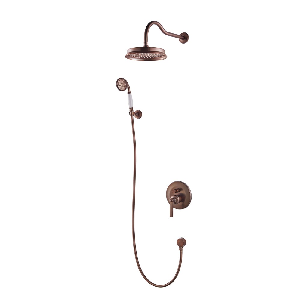 Nástenný sprchový set v retro štýle ARMANCE je s podomietkovou montážou je dostupný vo viacerých farebných variantoch: chrómová , zlatá a retro meď .