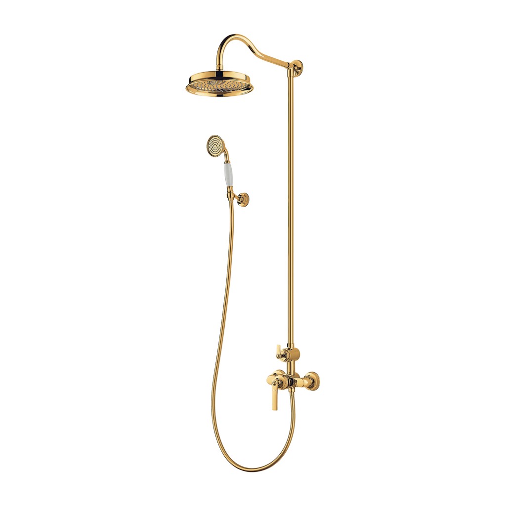 Sprchový stĺp v retro štýle s nástennou sprchovou batériou ARMANCE je dostupný vo farebných variantoch chróm , zlato a retro meď . Celková výška setu je 120 cm.