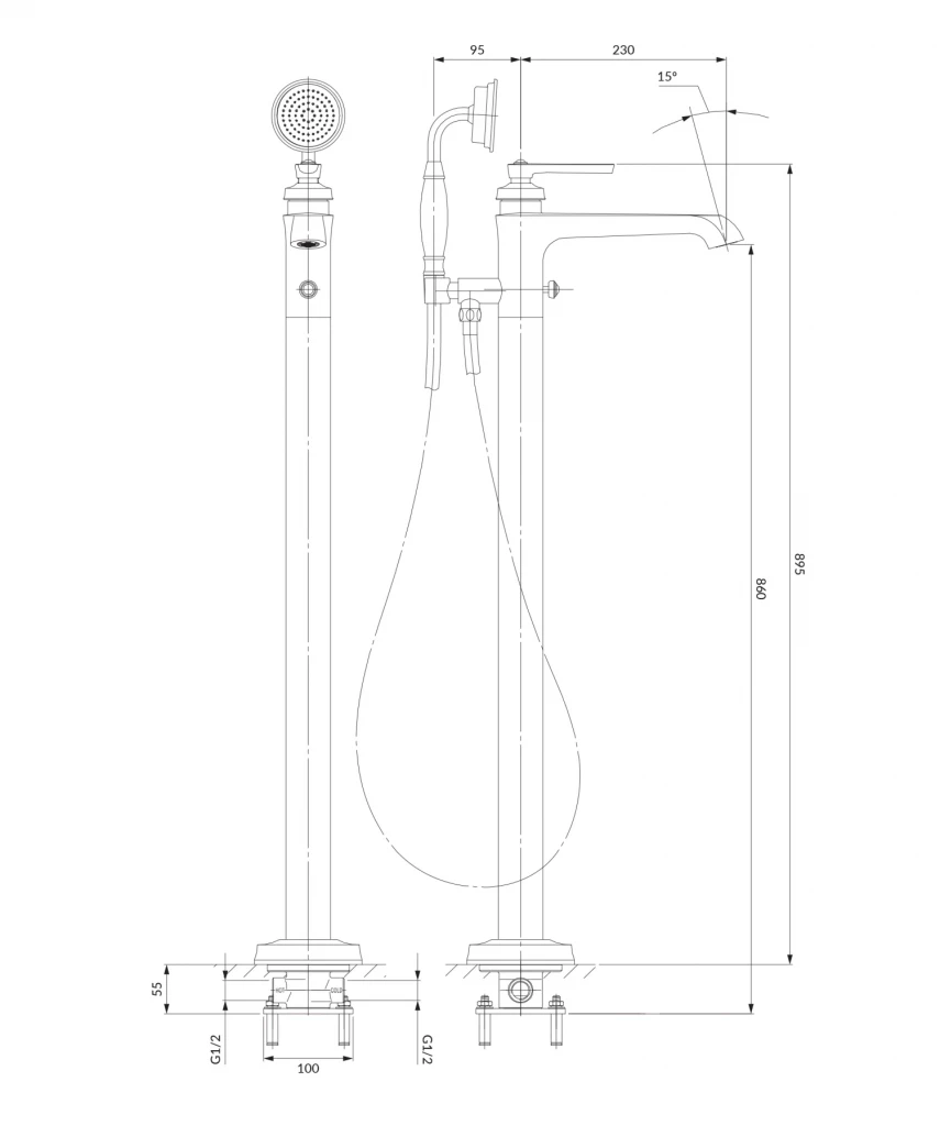 Vaňová stojanková batéria do priestoru je vyrobená z kvalitnej mosadze triedy A a je vybavená najkvalitnejšou keramickou kartušou, ktorá zaisťuje plynulé a presné riadenie prietoku vody. Technológia trysiek EASY CLEAN umožňuje užívateľovi ľahko odstrániť usadený vodný kameň jednoduchým utretím ich silikónového povrchu a vďaka perlátoru AIR WATER je voda mäkká a príjemná na dotyk. Batéria je dostupná vo farebných variantoch kartáčovaná mosadz , chróm , zlato a retro meď .
