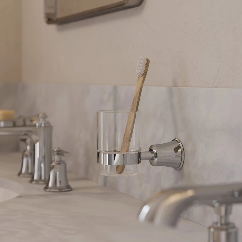 Upevnenie držiaka s pohárom na stenu sa vykonáva pomocou hmoždiniek a skrutiek, ktoré sú súčasťou produktu.